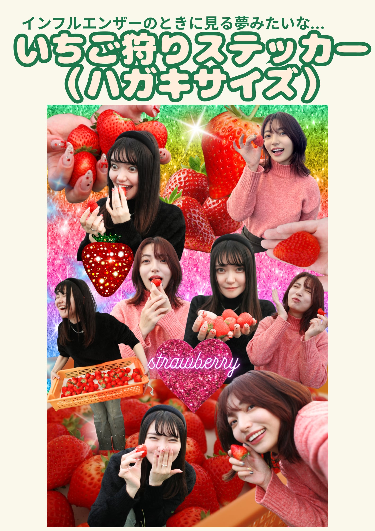 ・ハガキサイズステッカー「いちご狩り大好き」1枚